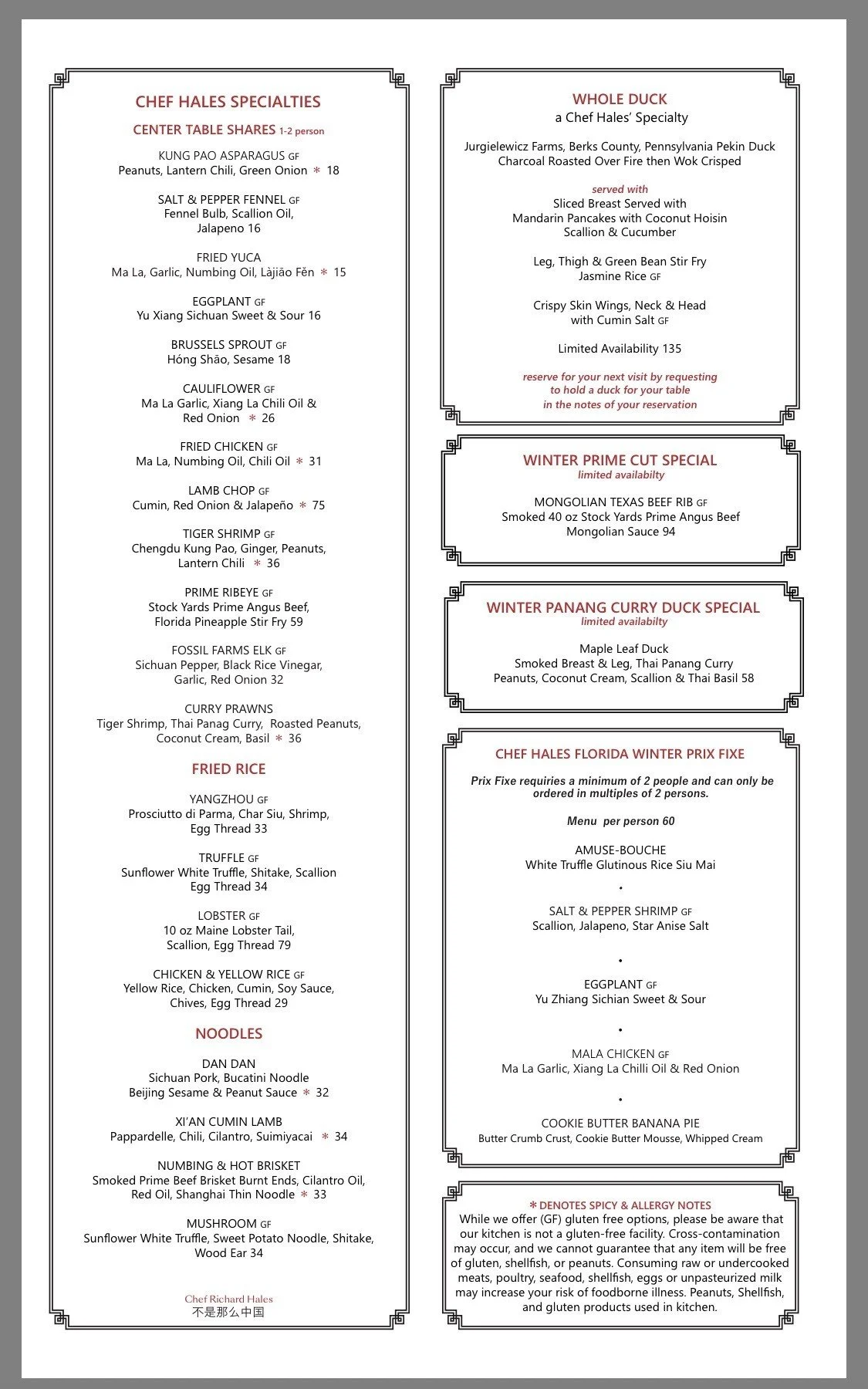 Peanuts, shellfish & gluten products used in kitchen. We use tapioca starch in place of wheat based flour and use gluten free soy sauce and Chinese products. While we offer gluten free options, please be aware that our kitchen is not a gluten-free facility. Cross-contamination may occur, and we cannot guarantee that any item will be free of gluten, shellfish or peanuts. Consuming raw or undercooked meats, poultry, seafood, shellfish, eggs or unpasteurized milk may increase your risk of foodborne illness.
